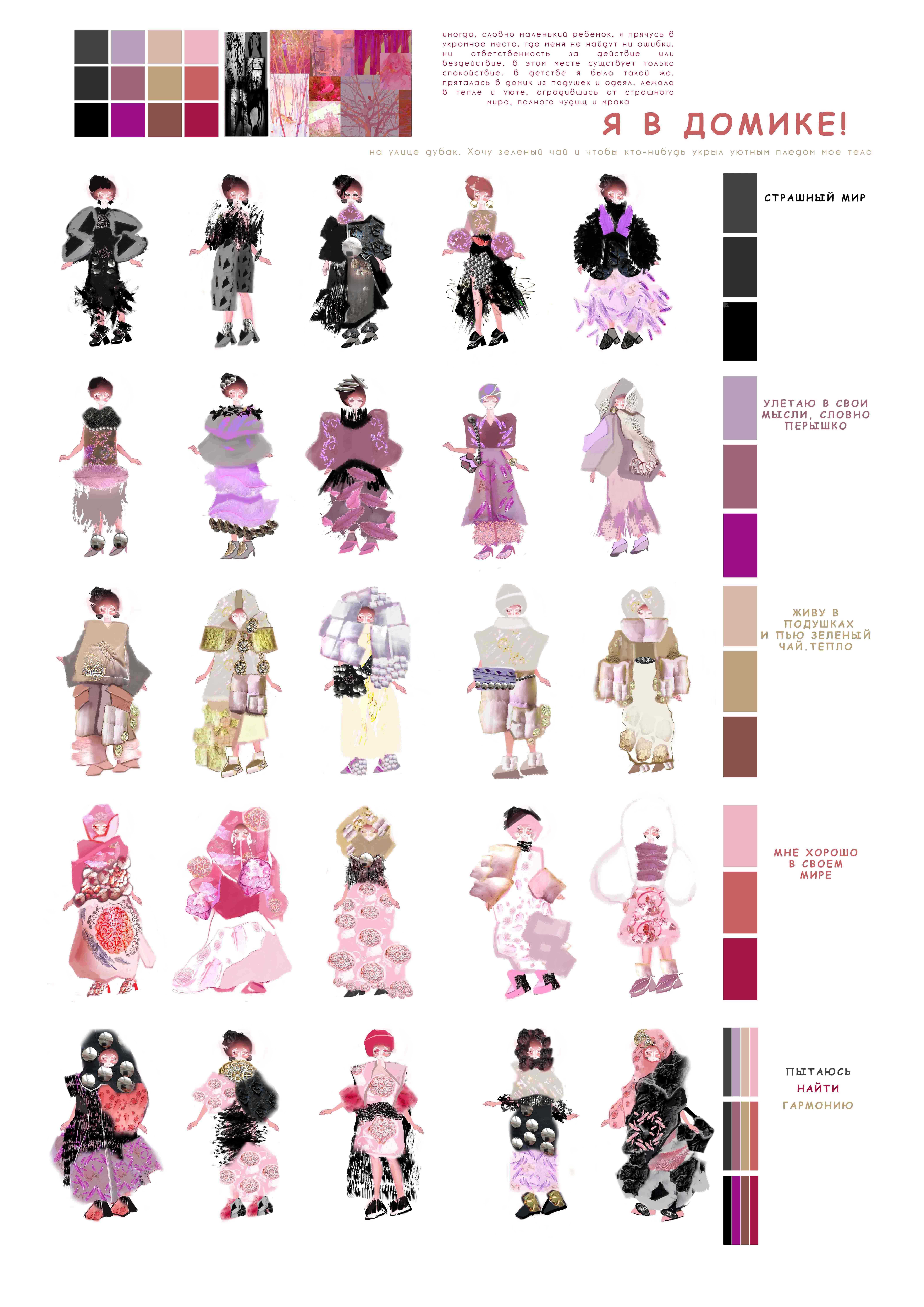 Концептуальный проект авангардного костюма, вдохновленный самоощущением автора, а точнее - моим желанием спрятаться в свой внутренний мир, изолировавшись от плохих новостей. Создать зону комфорта, словно забравшись в домик из подушек, как это было в детстве.