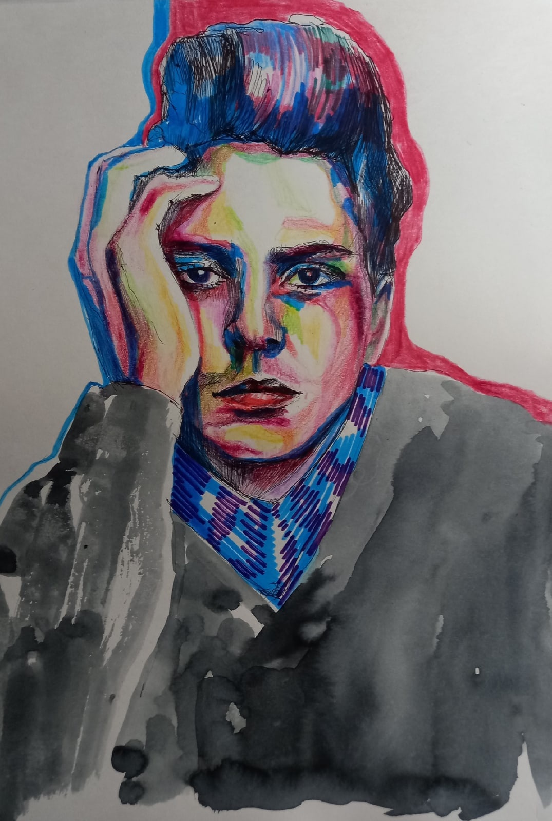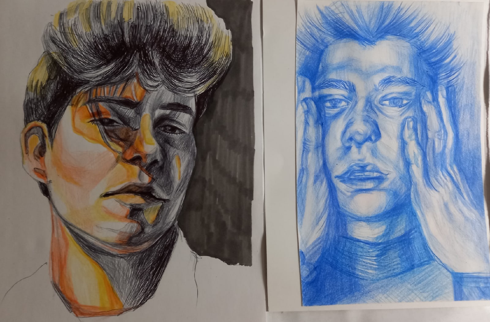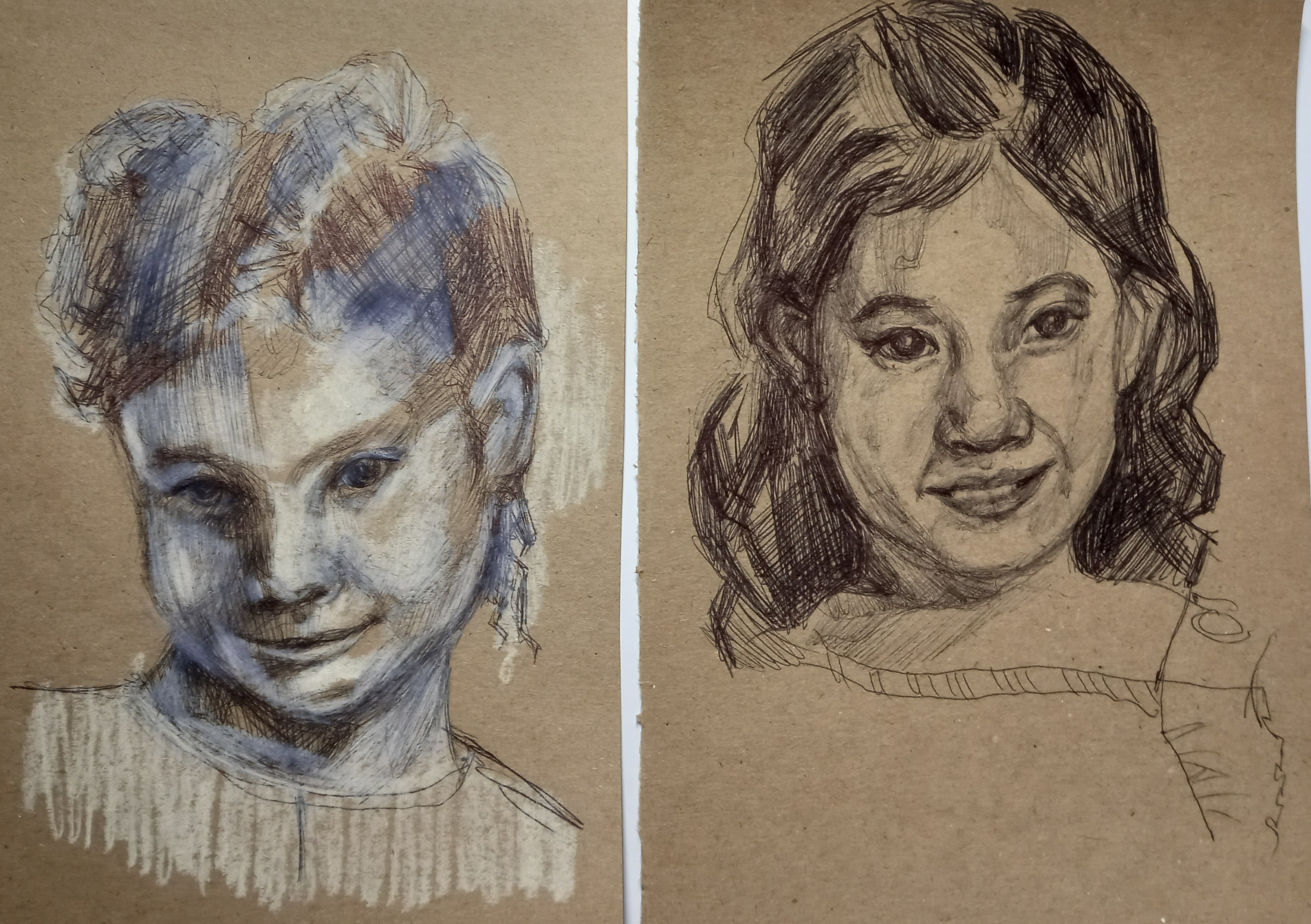 Наброски, выполненные в разной технике, с использованием чернил, цветных карандашей, пастели, шариковой ручки, бумага формата А4