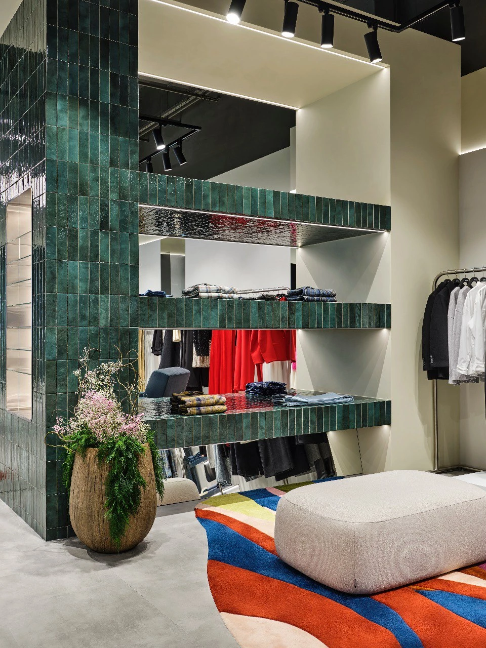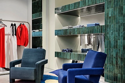 При организации пространства команда 2MOOD черпала вдохновение в городе и природе. В частности, 2MOOD создал уникальный ковер для этого пространства. Его цвета напоминают цветущие горы, а форма - океанские волны. Морская и поверхностная рябь прослеживается в глубоких синих и зеленых цветах плитки и ее текстуре.