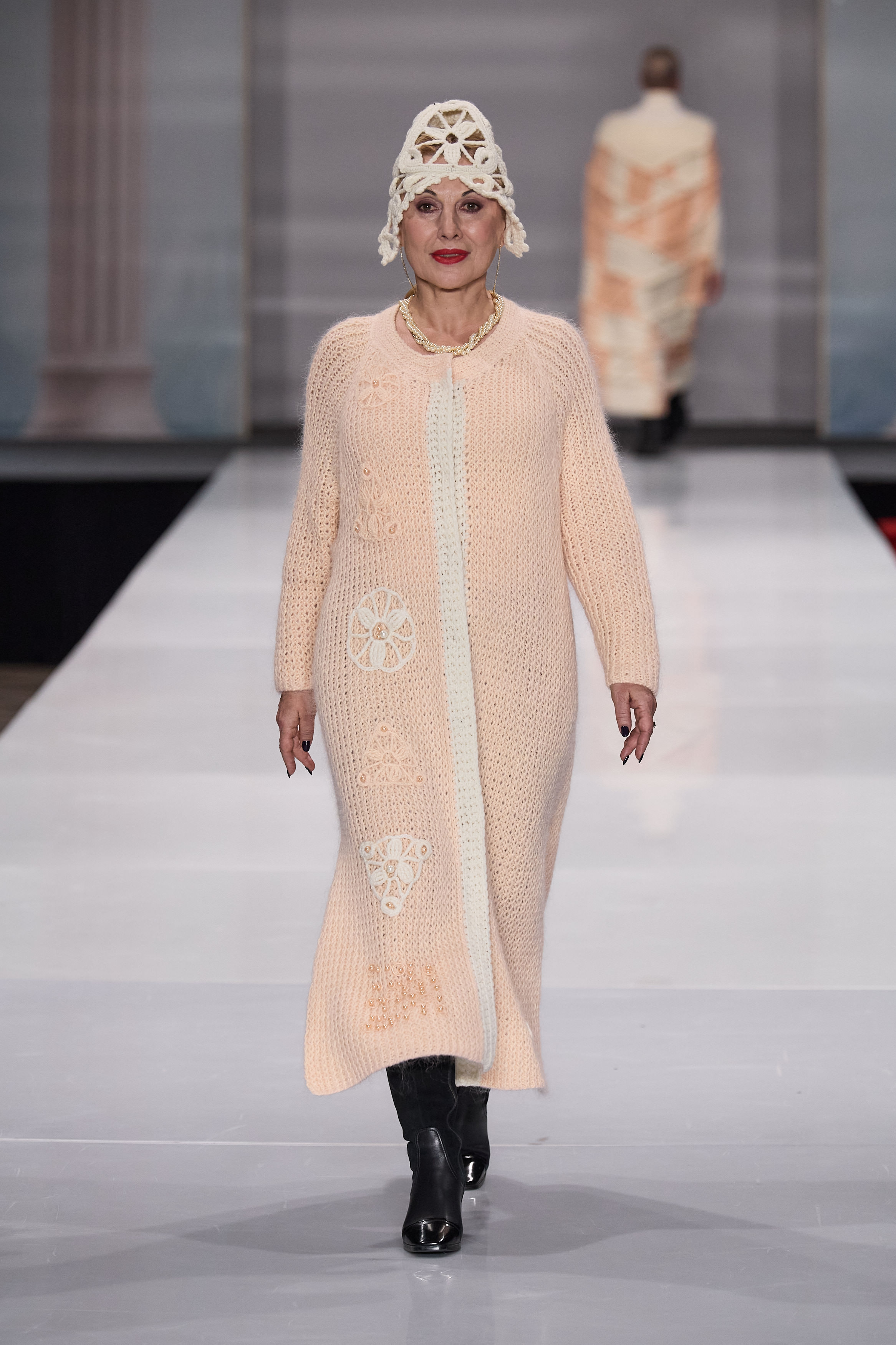 Команда дизайнера Ксении Серой представила коллекцию трикотажных пальто под названием «Это все обо мне». Все вещи были связаны вручную участниками мастерской. «Сейчас идет тенденция к возрождению ремесел и ручному мастерству. Все мои подопечные имеют уникальные навыки вязания и смогли вложить в каждое изделие личные эмоции и опыт. Они проделали колоссальную работу. Всего за два месяца своими руками создали коллекцию одежды, которая должна вдохновить и других людей к творчеству», – рассказала Ксения Серая. Участницы представили различные виды вязанных пальто, кардиганов и пончо, выполненных в пастельных оттенках розового, бежевого и коричневого. Также часть моделей была выполнена в технологии апсайклинга.