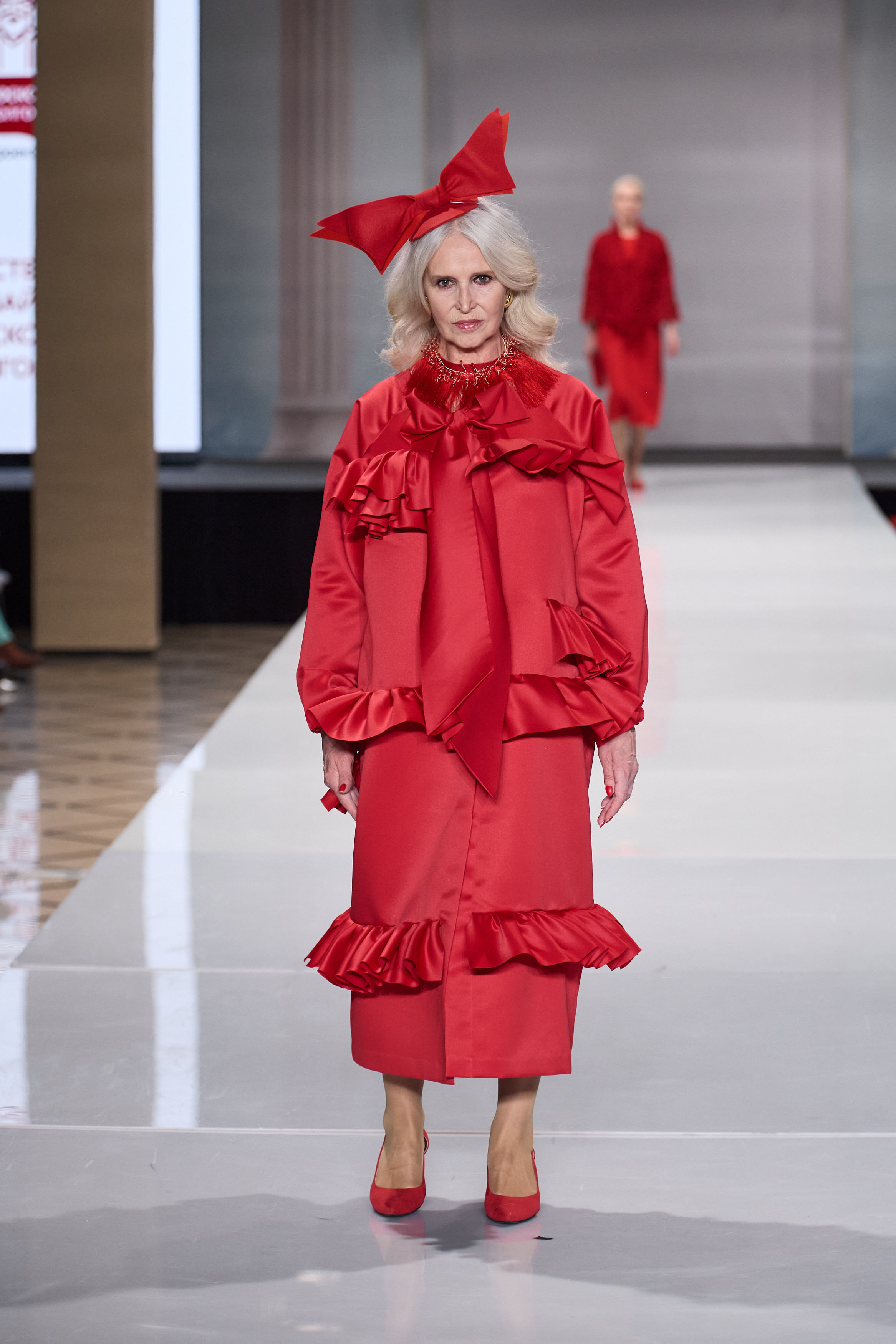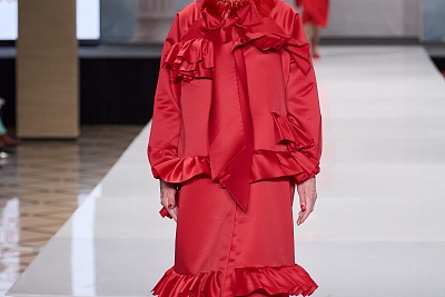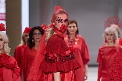 Закрывал модное шоу показ коллекции «Притяжение красного» от команды Сергея Сысоева. Все образы построены на разнообразии оттенков красного цвета и контрастных сочетаний фактур. Как отмечают «серебряные» дизайнеры, для каждого из них красный цвет символизирует что-то свое: любовь, страсть, власть, богатство, красоту, Москву и многое другое.