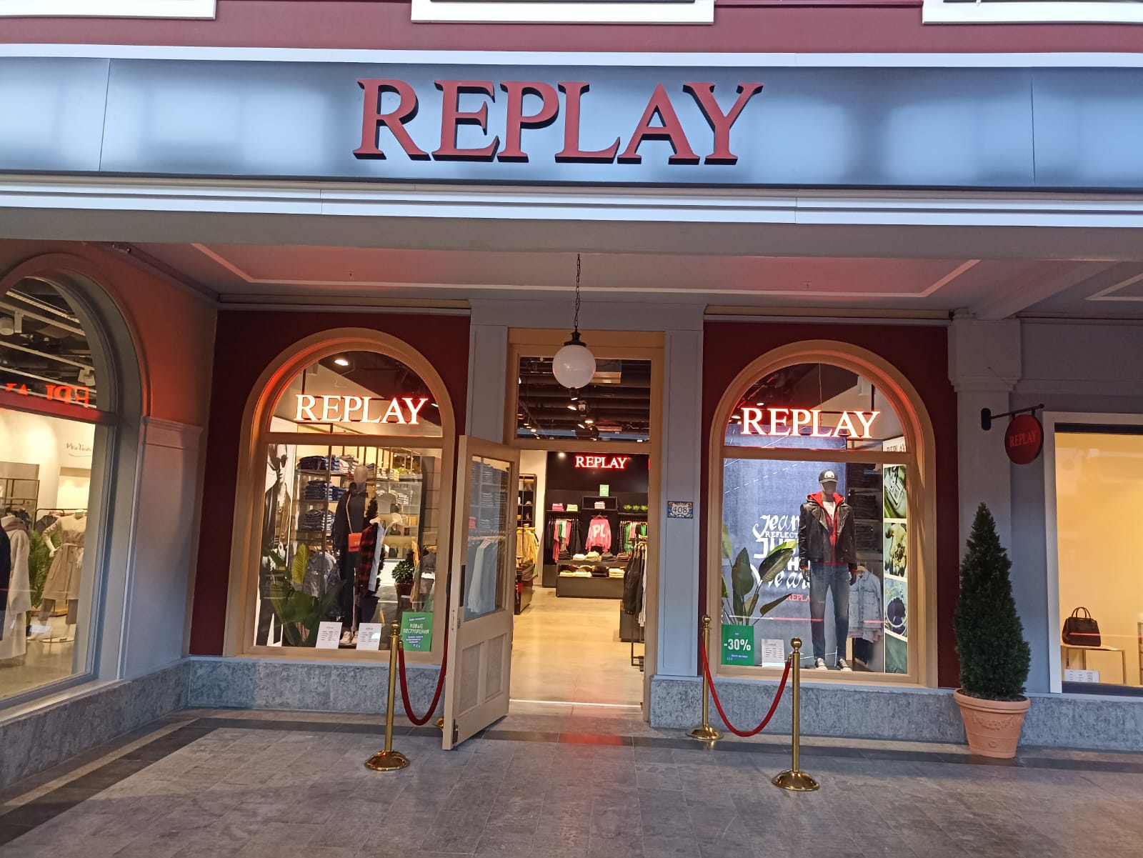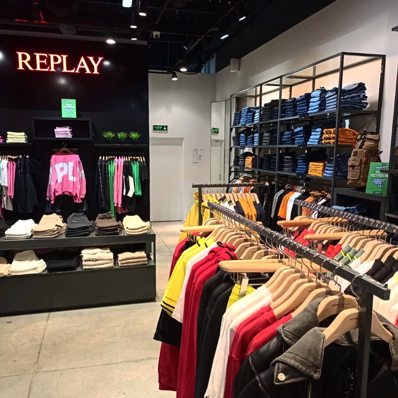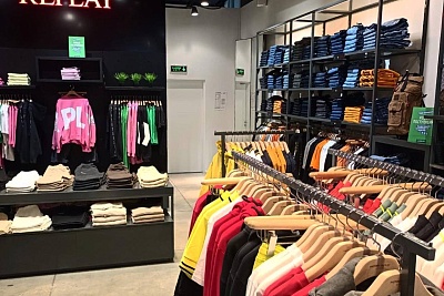 Монобрендовая точка занимает 145 кв. м в зоне премиальных марок La Galleria, рядом с фирменными магазинами Furla, Marс’O Polo и Patrizia Pepe. В ассортимент Replay входит не только мужская и женская одежда, но и детская. В торговой точке широко представлены модели из денима, повседневная одежда, а также обувь, аксессуары и парфюмерия.