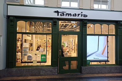 Еще один запуск связан с маркой Tamaris, производящей модную обувь и аксессуары для женщин. На площади 174 кв. м размещен большой спектр продукции со скидками до 70%.