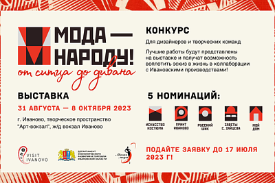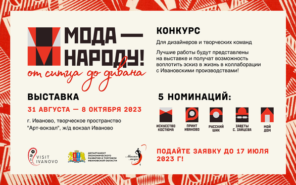 10.07.2023Всероссийский конкурс современного дизайна проводится в рамках выставки «Мода — народу! От ситца до дивана», которая 31 августа откроется в арт-пространстве ивановского ж/д вокзала. В выставочном проекте примут участие финалисты конкурса. Также победители смогут создать коллаборации с производствами Ивановской области и получат денежное вознаграждение.