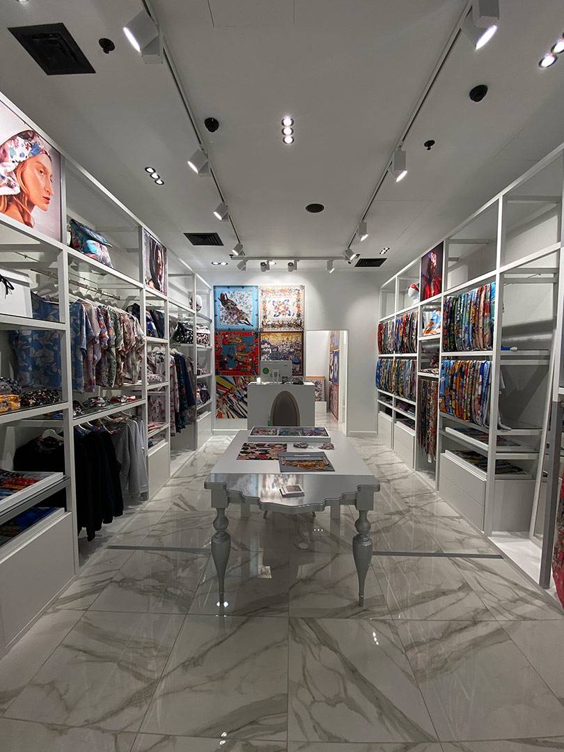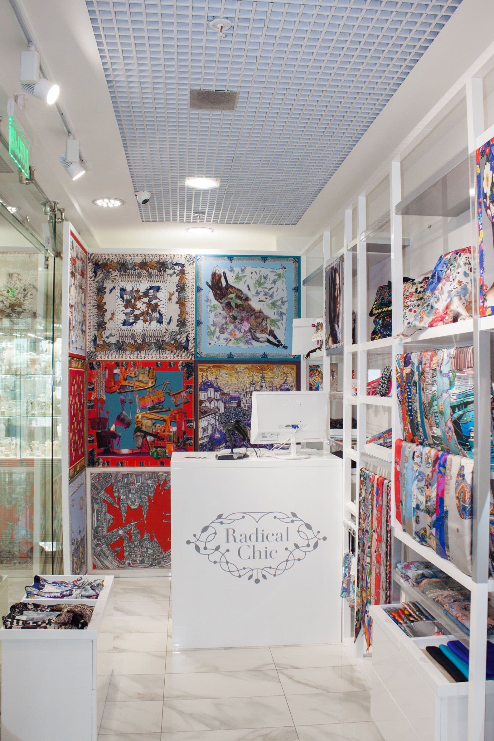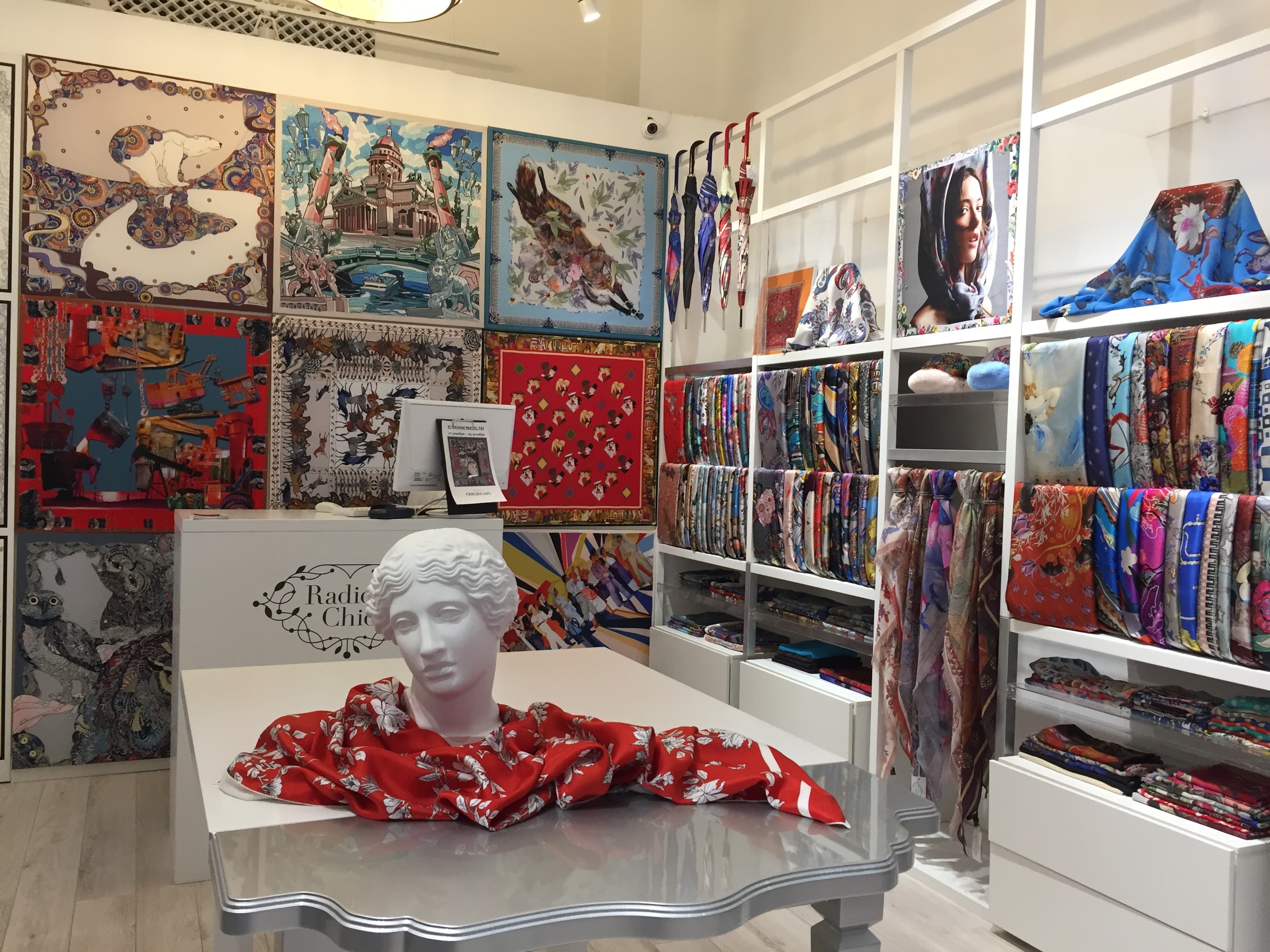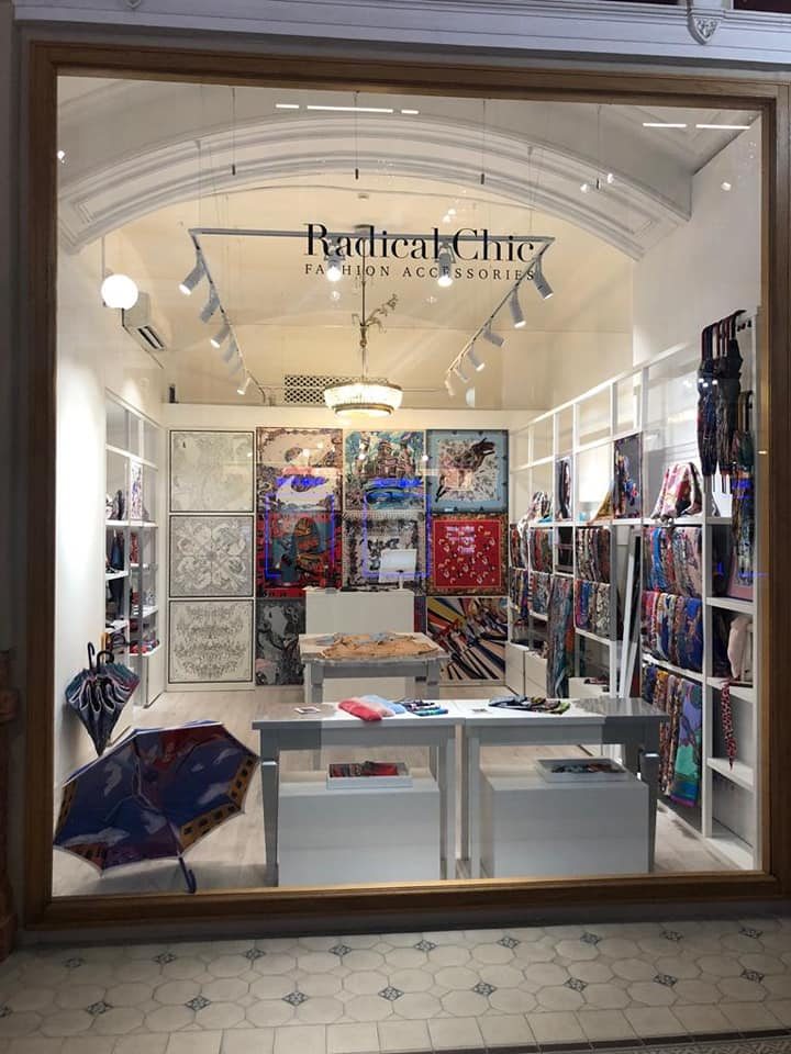 Платки из натурального шелка, шерсти, кашемира и хлопка представлены в четырех магазинах бренда в Москве и Санкт-Петербурге, а также более чем в 65 точках продаж по всей России и миру. Новый магазин Radical Chic расположился по адресу: г. Москва, Охотный ряд, д. 2, 1-й этаж.