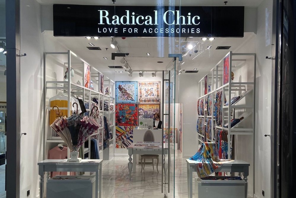 Важно отметить, что торговое пространство ориентировано на одежду и впервые оборудовано удобной примерочной. В магазине представлены футболки, худи, блузки, рубашки и дождевики, а также аксессуары – шёлковые платки, платки из хлопка и шерсти, ленты-скинни, зонты и другие изделия. В планах развития Radical Chic разработка коллекции верхней одежды, пишет РИА Мода.
