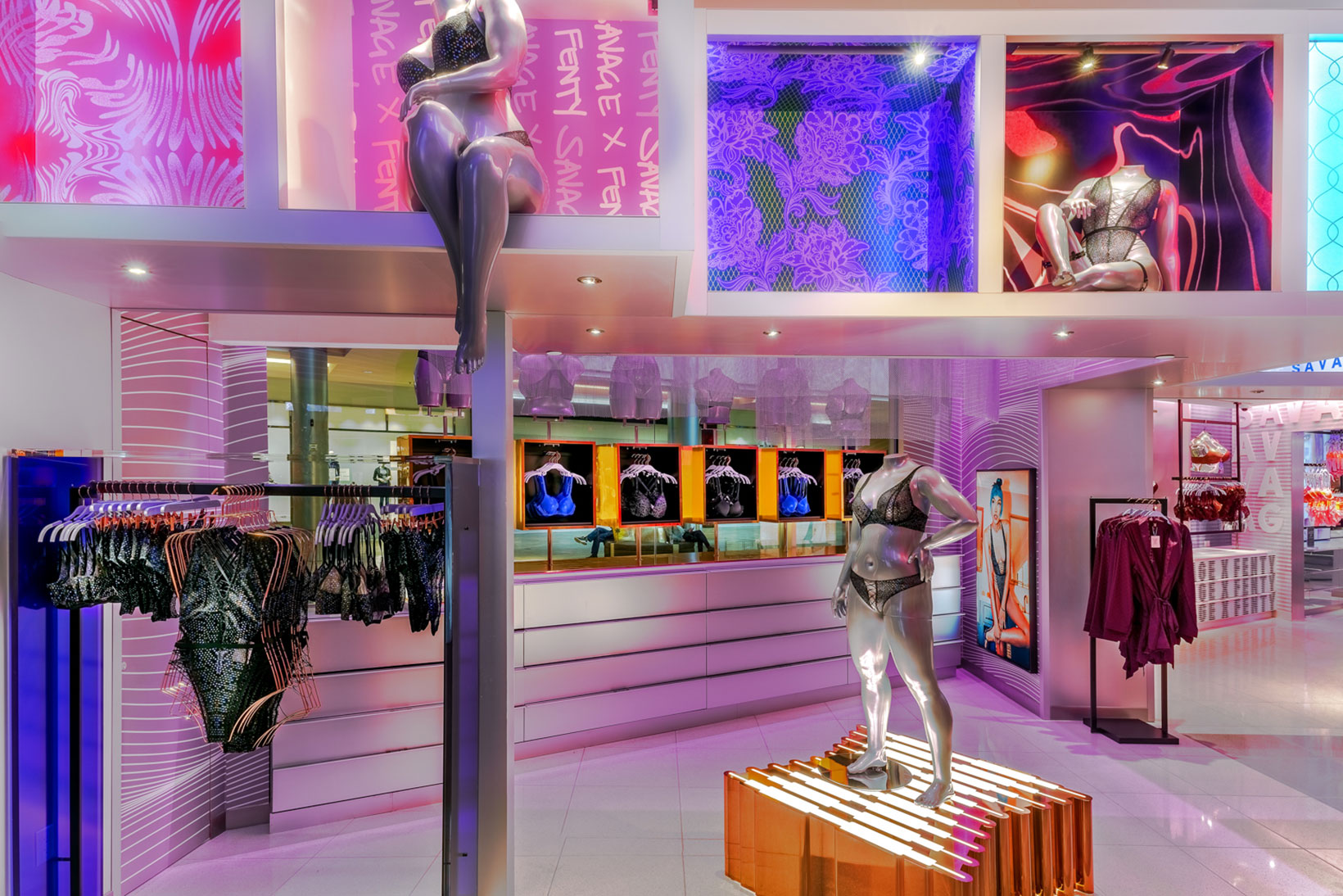 В Savage x Fenty также обещают, что пространство розничных магазинов будет постоянно меняться благодаря системе «бесконечного мерчендайзинга». Яркий дизайн, по задумке авторов, также привлечет любителей фотографироваться для Instagram.